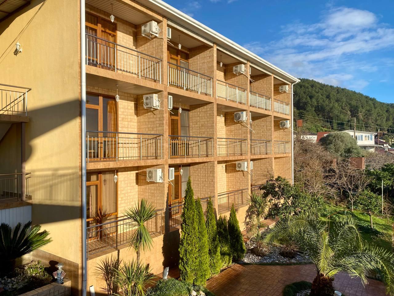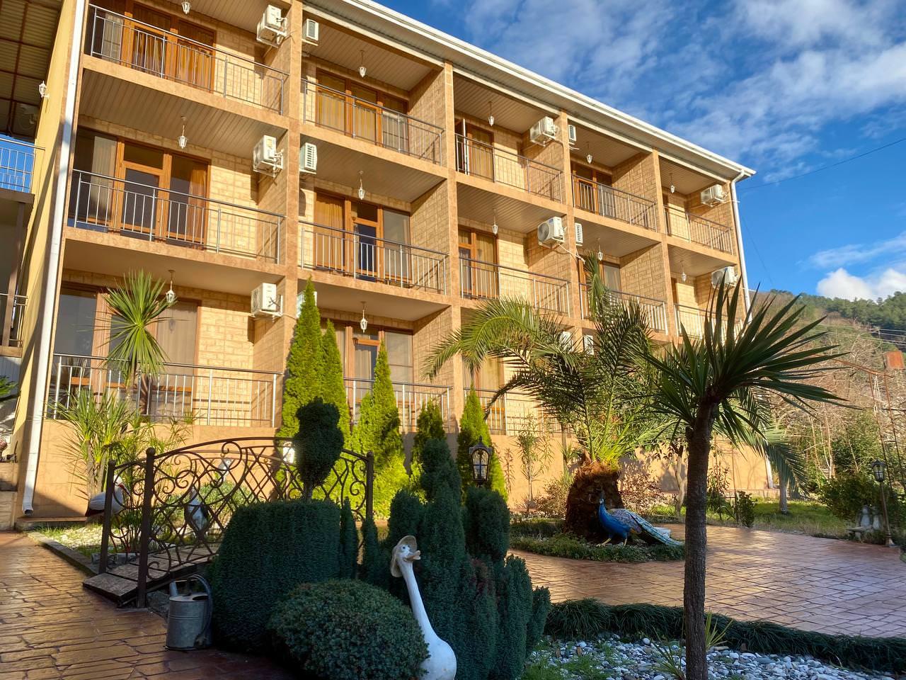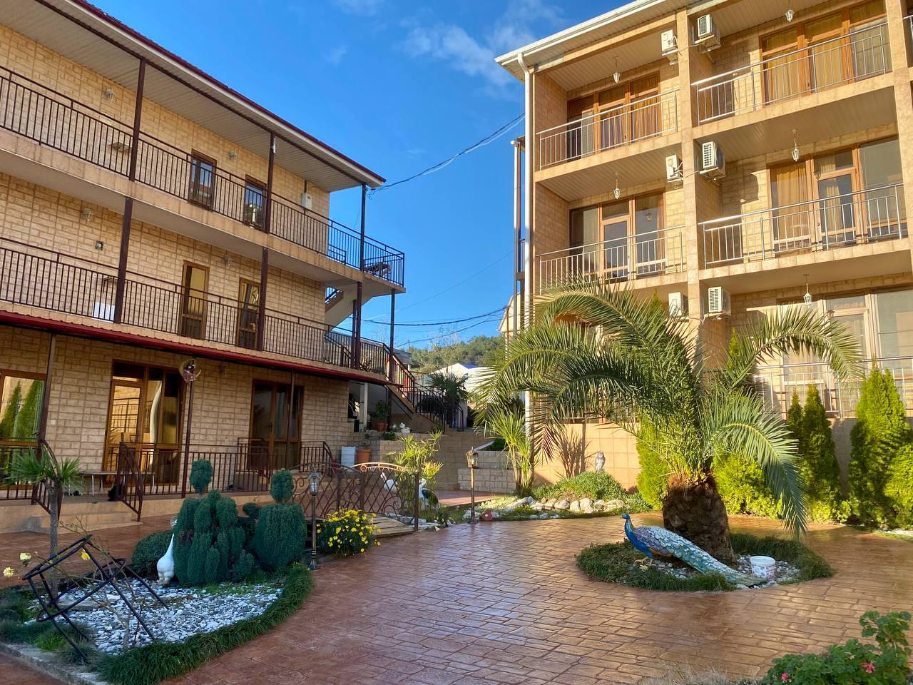 На территории комплекса имеется открытый бассейн с зоной для загара, охраняемая парковка, детская игровая площадка, просторный ухоженный зелёный двор и терраса с видом на мандариновый сад. Для гостей работает столовая и шашлычная с отдельным столом в саду. Бесплатный Wi-Fi доступен по всей территории отеля.
