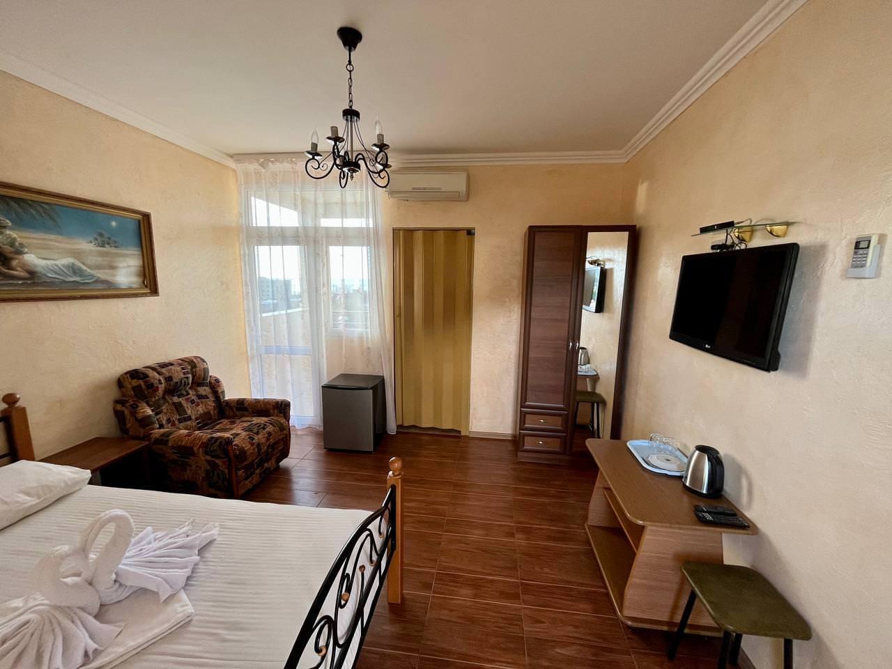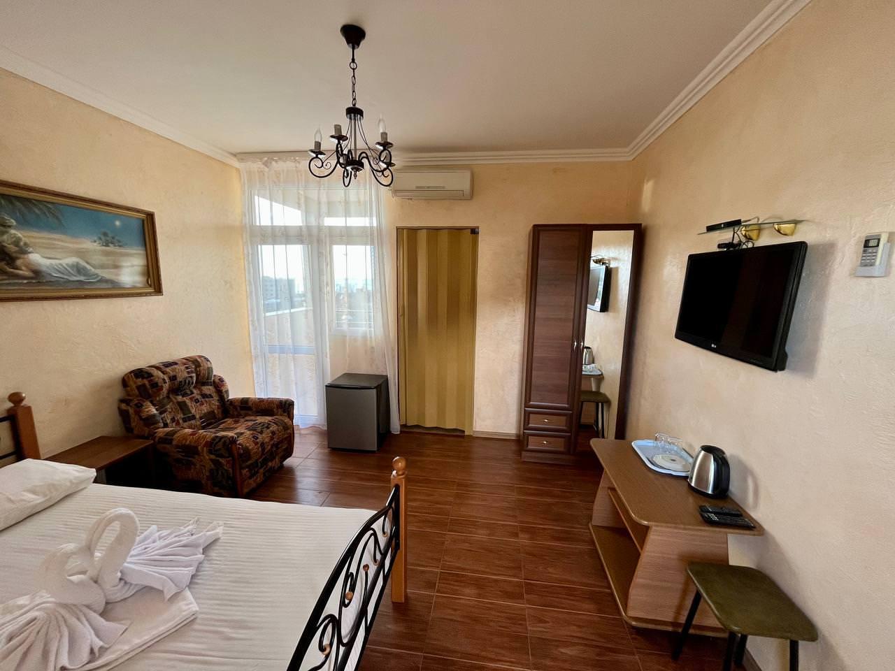 Уютный двухместный номер. В распоряжении гостей: балкон с красивым видом, сан узел с душем, сплит-система, холодильник, чайник, фен, Wi-Fi.